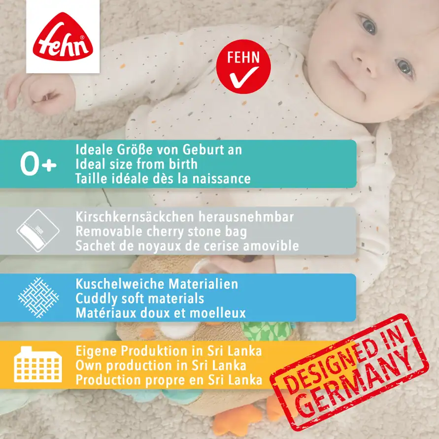 Met uitneembare kersenpittenzak voor warmte of verkoeling. Zacht, wasbaar en geschikt vanaf de geboorte. Perfect bij buikkrampjes of als knuffelvriendje.
