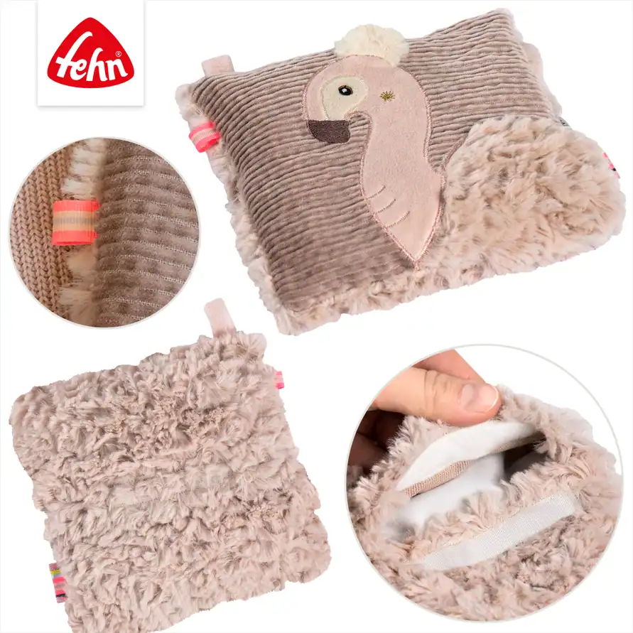 De zachte materialen (pluche, corduroy en velvet) maken de Flamingo niet alleen functioneel, maar ook een echte knuffelvriend. Daardoor is dit kersenpitkussen ook een prachtig kraamcadeau of geboortecadeau.