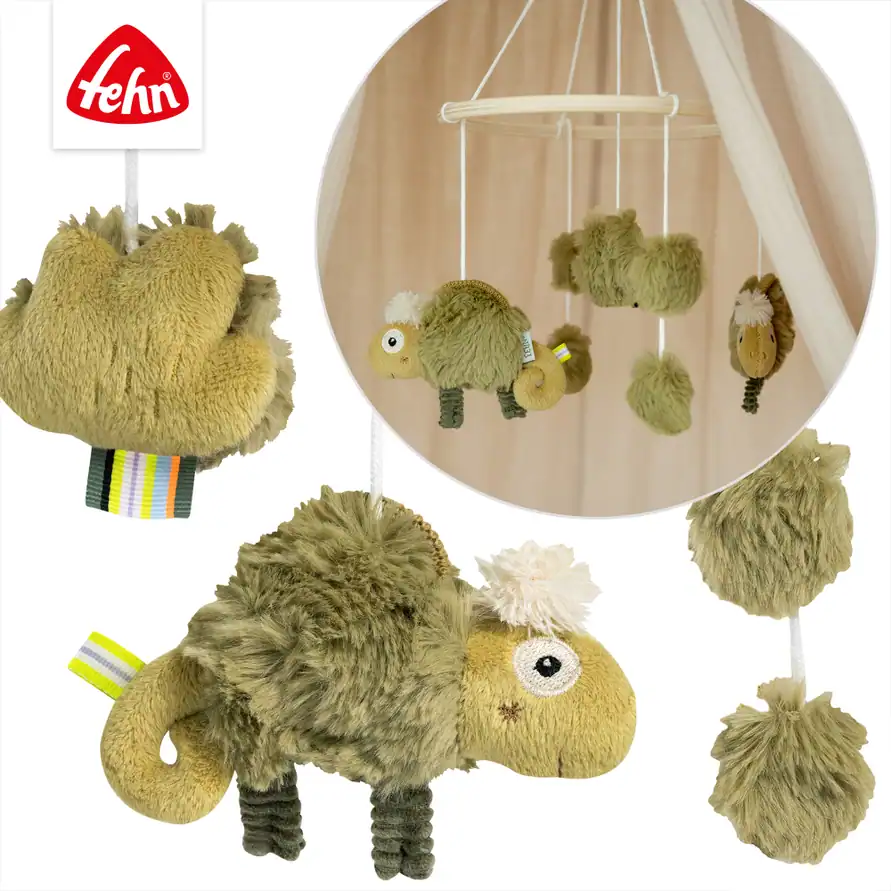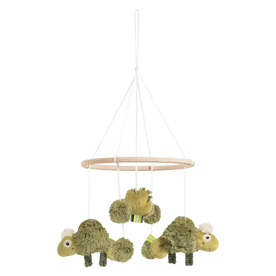 Tijdens het verschonen, in bed of bij een rustmoment biedt de kameleon mobiel een kalmerend focuspunt. Geen harde contrasten of drukke prints, maar een doordacht ontwerp dat past bij wat jonge baby’s écht nodig hebben.