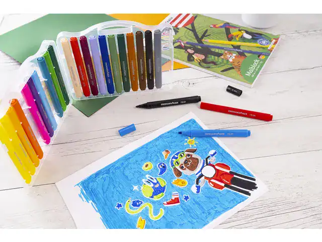 - Vilstiften in plastic box met 24 verschillende kleuren.