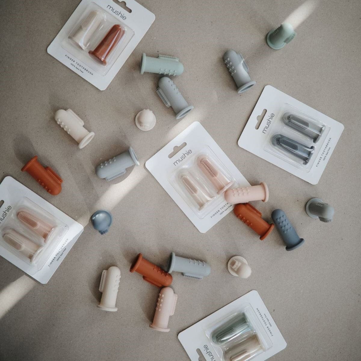 Laat je kleintje op een fijne manier kennismaken met tandenpoetsen met Mushie’s vinger tandenborstels – de perfecte eerste stap op weg naar een levenslange glimlach!